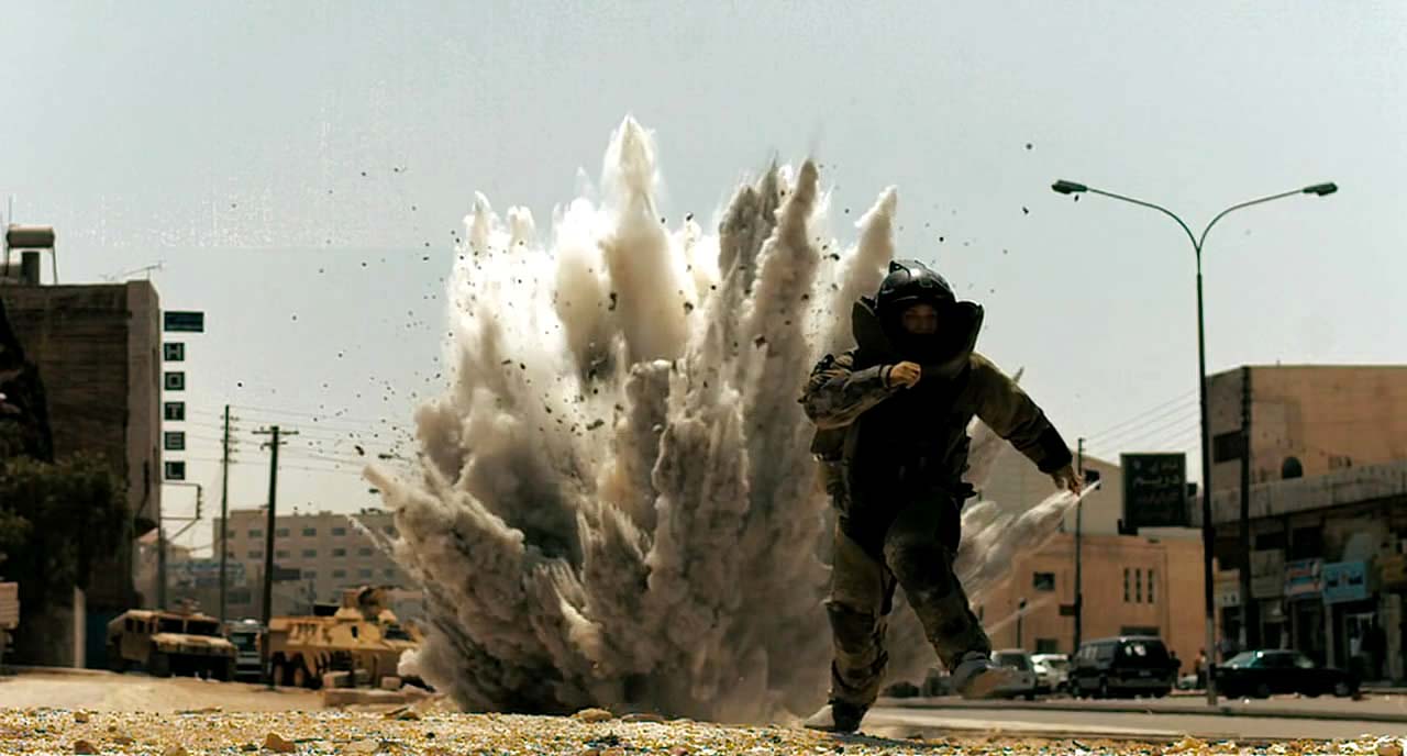 La nueva película de Kathryn Bigelow es un filme bélico en el sentido más literal del término; despojado, pues, de cualquier posicionamiento ideológico, sociológico o metafísico, narra de forma directa e implacable la cotidianeidad de un grupo de artificieros estadounidenses en el Bagdad actual. Consecuentemente, carece de la perspectiva antimilitarista de obras como Senderos de gloria o La chaqueta metálica; del cuestionamiento político de la intervención armada norteamericana de Corazones de hierro o Redacted, o de la reflexión existencial de Apocalipsis now o La delgada línea roja. Sin embargo, es de agradecer que la directora no insulte la inteligencia del espectador y nos libre de una visión gloriosa o épica de la guerra. Muy al contrario, sus imágenes, nerviosas, sucias e inmediatistas, como las de un reportaje televisivo, constatan que el caos y el terror son el pan nuestro de cada día entre los soldados movilizados. Bigelow mantiene un discurso argumental coherente con el discurso visual, y, por tanto, ni justifica la contienda ni esquematiza a los personajes.